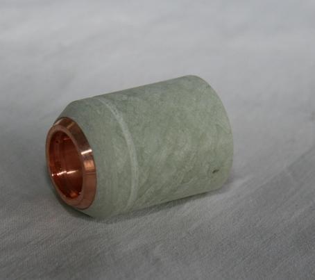 Основою ковпачка служить порошковий матеріал посилений включеннями кераміки, крім того, конструкція посилена вставкою з мідного сплаву. Такий набір матеріалів забезпечує тривалий термін експлуатації і високу стійкість до зношування.